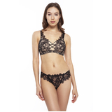 • Romantic lace-up middle elegantly covers the nude bra construction.