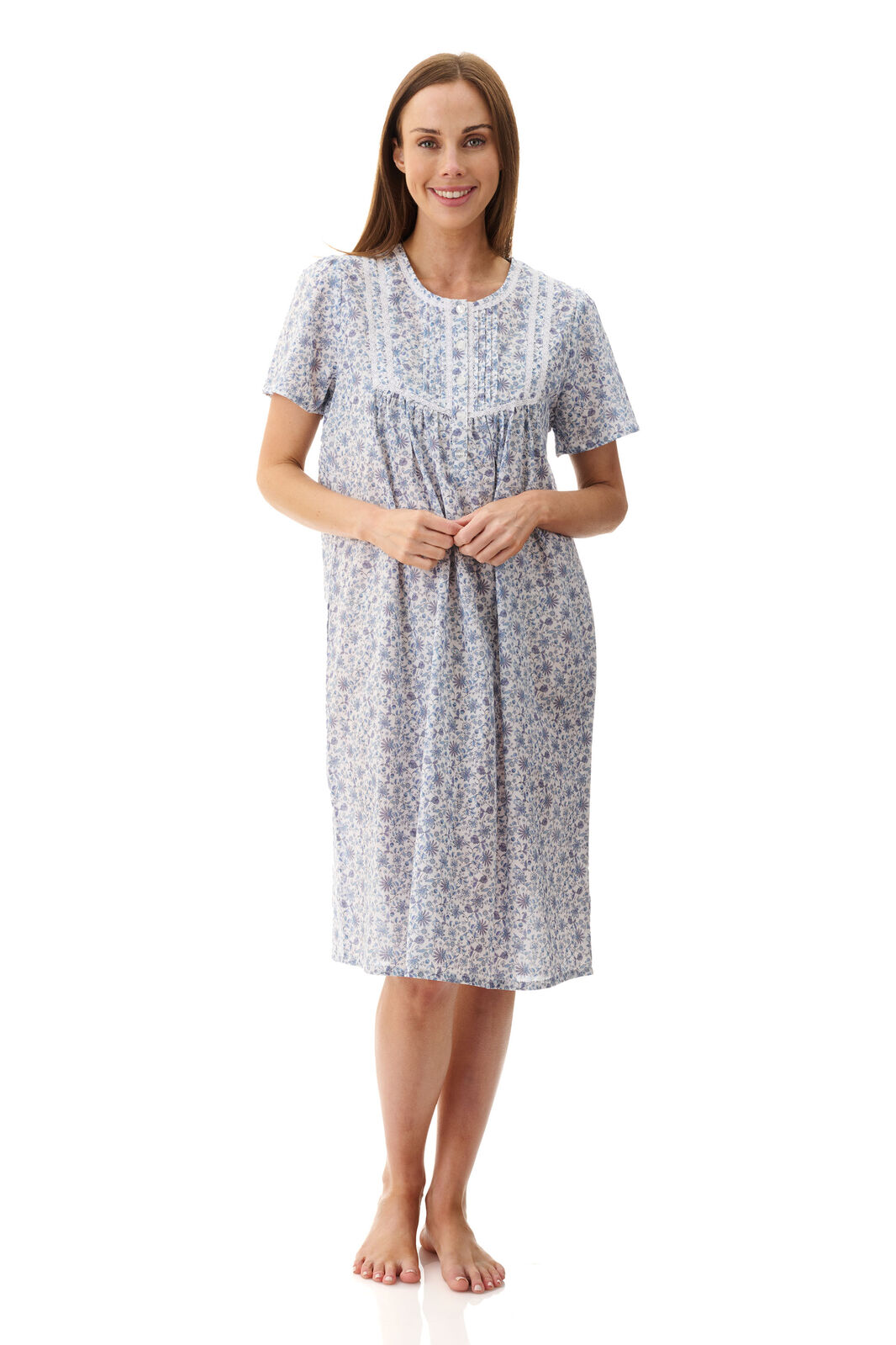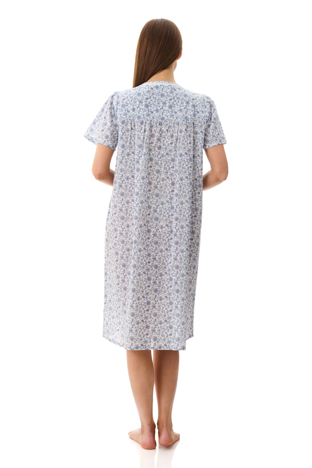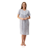• Short sleeve short nightie with a narrow self gathered frill on the neckline