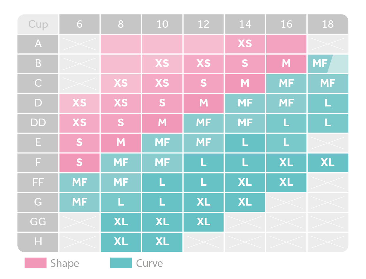 Please use the size chart as a guide to help you find the perfect fit. Your breast form should fit comfortably in your bra, and should not move around or fold in on itself. If you find that your Boost doesn’t look right, or if you’re experiencing excessive movement, please get in touch as our team of trained bra fitters are always on hand to help.