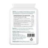 Each 530mg capsule (vegan) contains purified Citrus Sinensis, standardised to contain 70mg of citrus Bioflavonoids; Chamomile 100mg (Matricaria Recutita L. Flower); Pomegranate (1000mg), Punica granatum L,  standardised to contain 10mg of Ellagic Acid; Curcumin  Complex (Curcuma Longa, Rhizome), standardise to deliver 24mg of curcuminoids; Resveratrol 100mg from Polygonum cuspidatum Root.