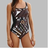 Chains Mesh High Neck Mastectomy One Piece Swimsuit - Navy