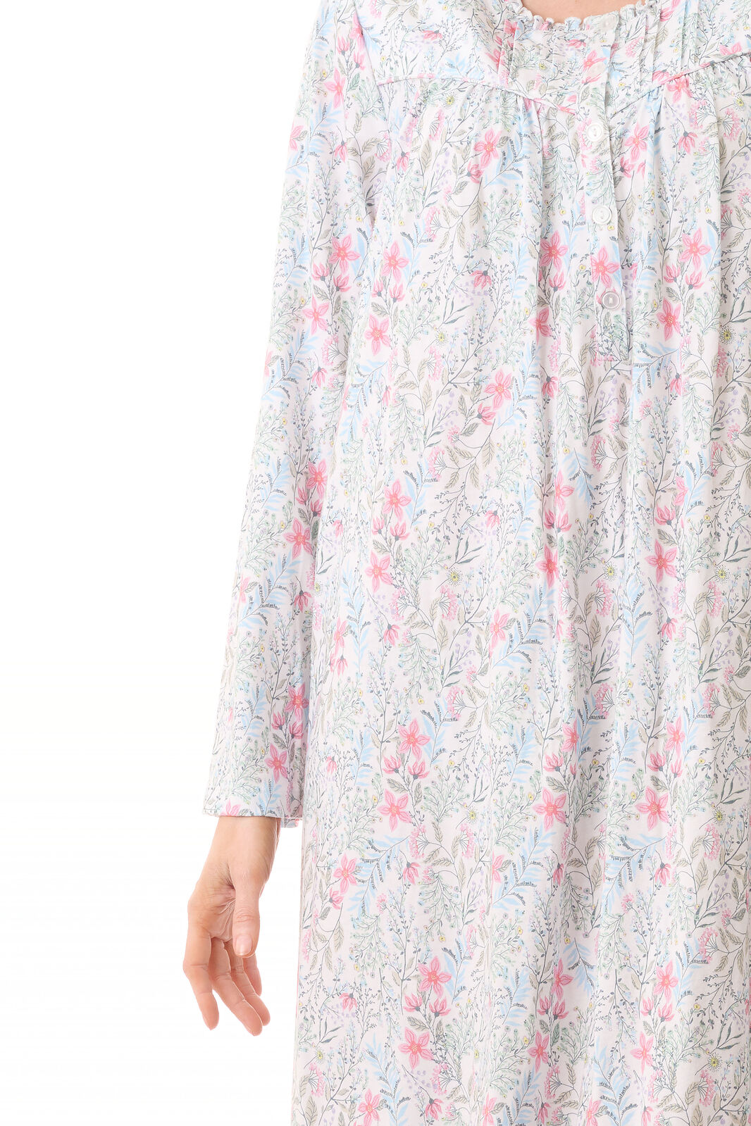• Mid length nightie in floral "Vicky" print on comfortable knit jersey.
